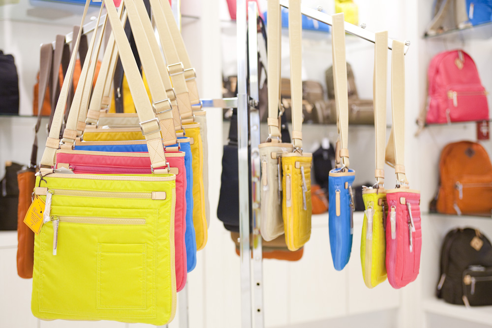 店内の棚にはカラーバリエーションの豊富なバッグシリーズが、色別にずらりと並ぶ。高級感のあるナイロン生地のシリーズや、使い込むほどに味わいがでるイタリア産の天然皮革を用いたシリーズなど、使用しているのはヨーロッパの一流ブラントのバッグと同じ品質の素材。「ハワイ暮らしで本当に使い勝手のいいもの」を追求し、職人の優れた技で丁寧に仕上げられるバッグは、ビーチの砂がついても汚れにくいように表面をテフロン加工して防水性を高めるなど、ローカルブランドならではの細やかな配慮がなされている。