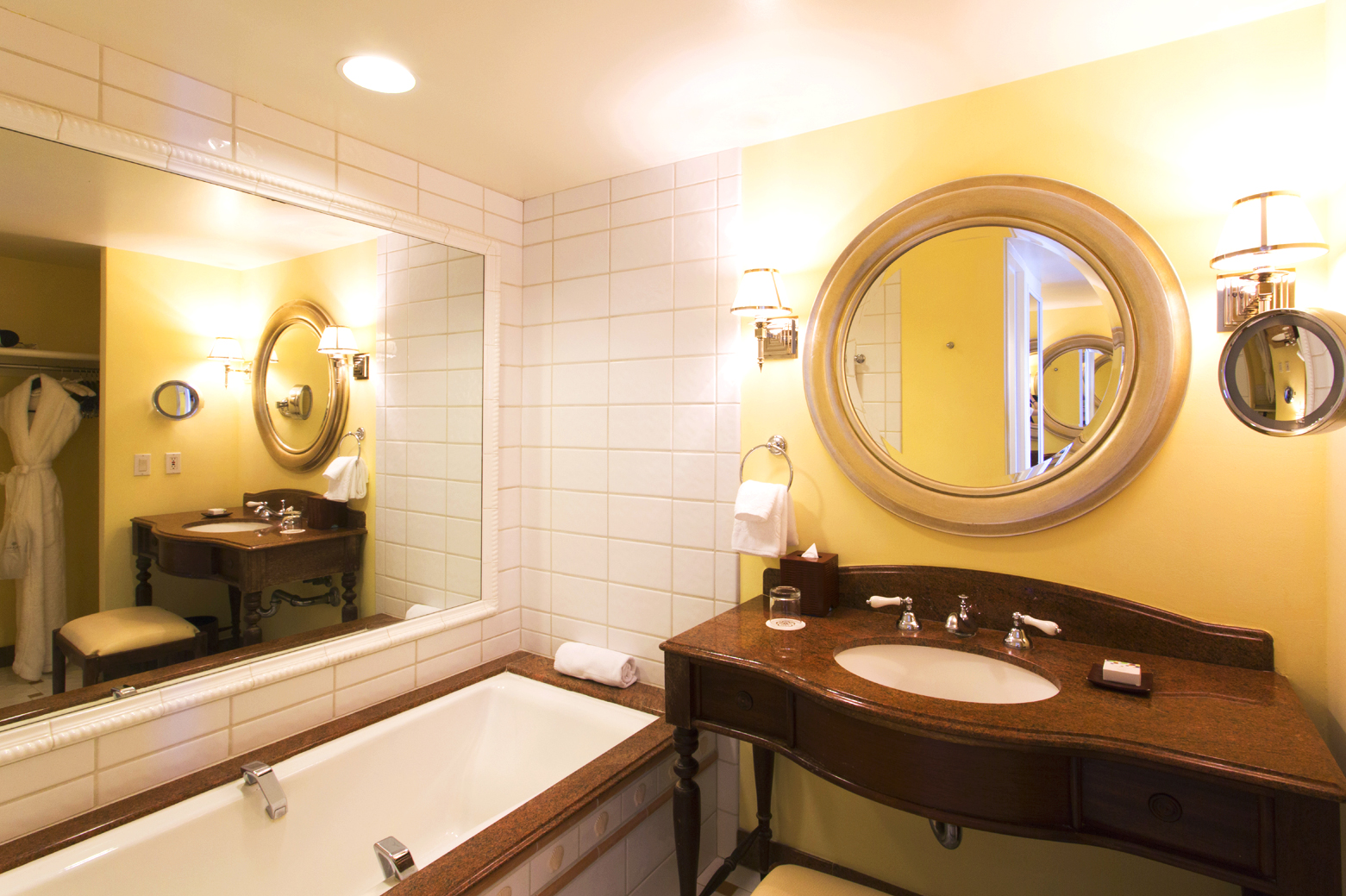 ゆったりとしたバスルームにも漂う高級感。アメニティも最上級のものが揃う。