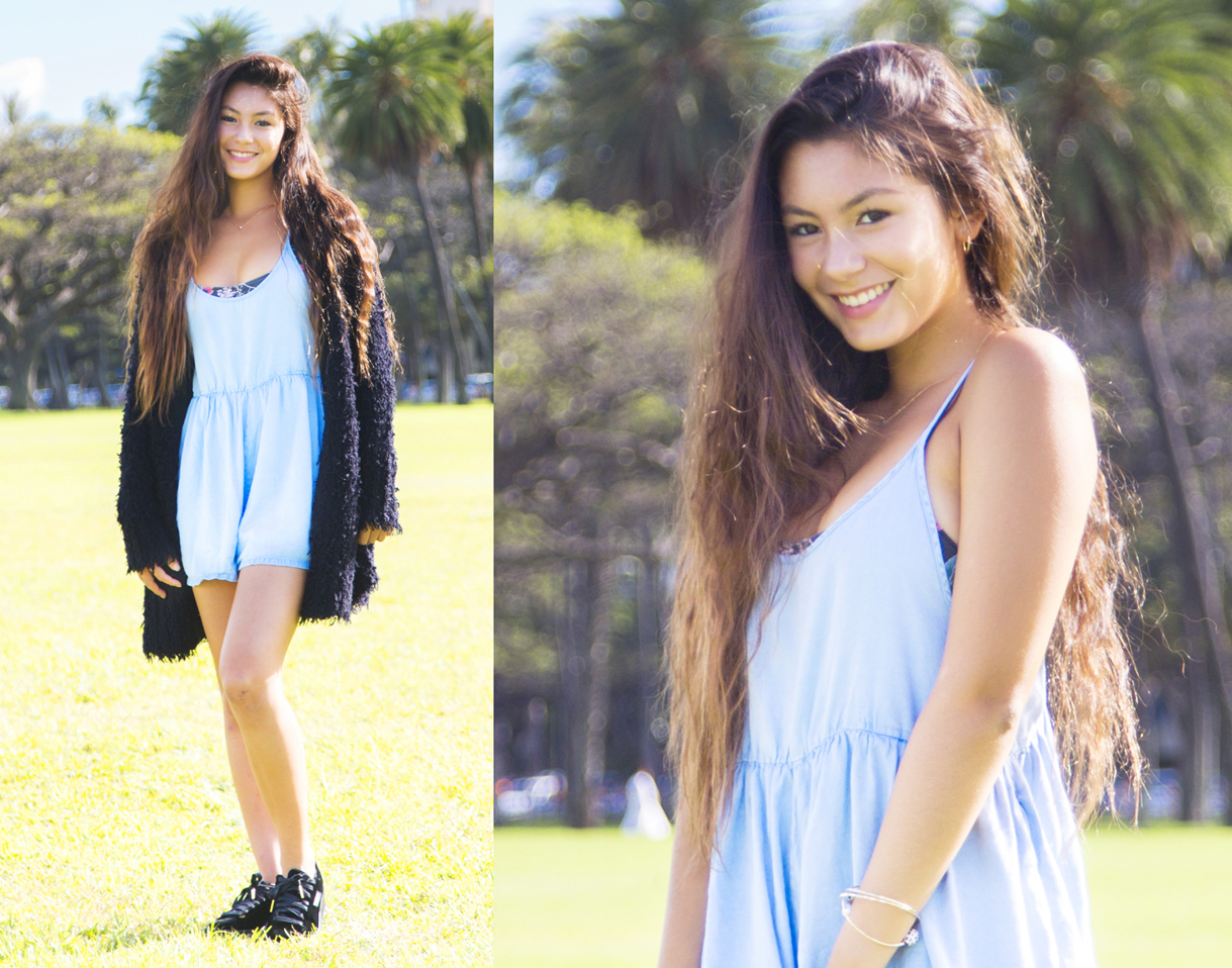 今日はロコガール大定番のコーデでまとめた。爽やかなハワイの自然によくなじむ。