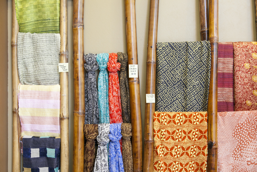 バリ島で出会ったバティック職人から技術を習得したジョーン氏が自ら染色するバティックのウエアは、肌触りも心地よく好評。