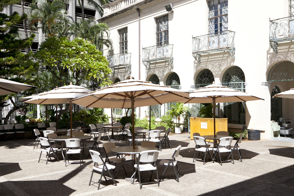 ハワイの歴史的な建物物として認定されているYWCAの中にお店がある。その店名は、著名建築家のジュリア・モーガンにちなんでいるという。イオラニ宮殿の目の前、カメハメハ像からもすぐというわかりやすいロケーション。午前中にダウンタウンを散策してから、おしゃれなランチタイムを楽しむ、といったコースプランもいいだろう。