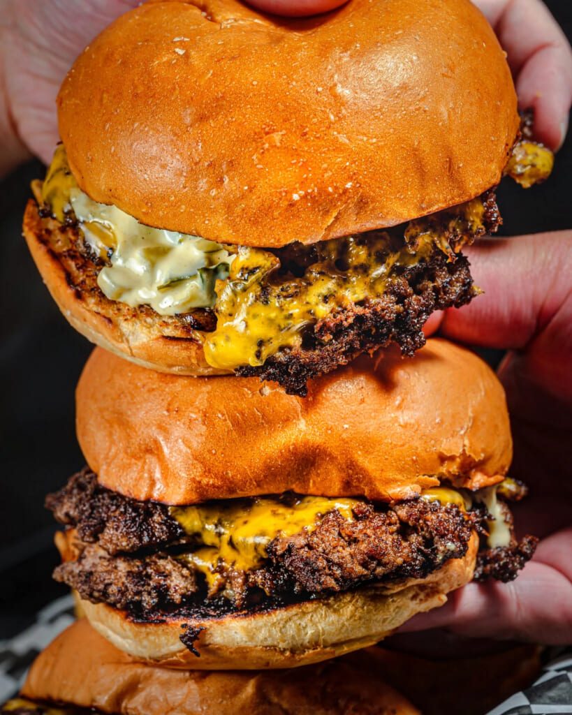 こちらのハンバーガーは、鉄板の上でパテを押しつぶしながら焼き上げるスマッシュスタイルがそのおいしさの秘密。