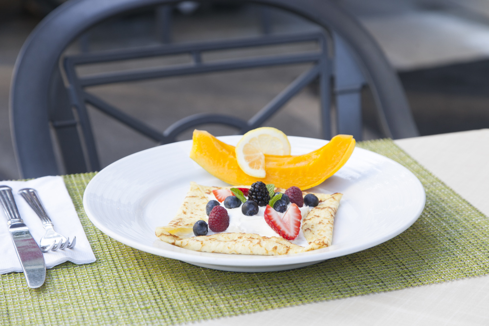 評判のブレックファーストに行ってみよう。イタリアンスタイルのクレープと共に楽しむドリンクは、フレッシュジュースやコーヒー、紅茶などをドリンクバースタイルでいただける「ジュースバー」がお得。あるいは「ハイビスカス・スプマンテ」も優雅な気分に浸れていいだろう。