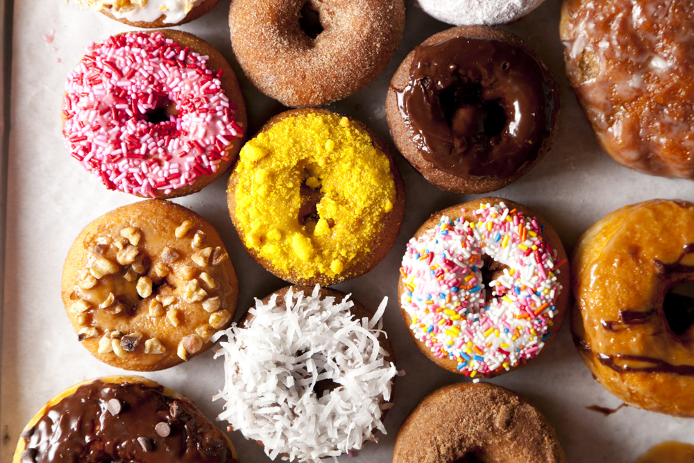真っ赤な見た目が有名な「レッドベルベット」のドーナツやストロベリー、バニラ、ココナッツなどバラエティ豊かなフレーバーが揃い。どれも派手な見た目からは想像できないやさしい甘さが広がるのだ。カラースプレーの下に隠されたバニラアイシングが美味しさの秘密。ひとつひとつ丁寧にバーナーで炙ったパリパリのブラウンシュガーが魅力的な「クリームブリュレ・ドーナツ」や、日本でも話題となった、クロワッサンとドーナツのハイブリット「クロナッツ」も人気の商品だ。