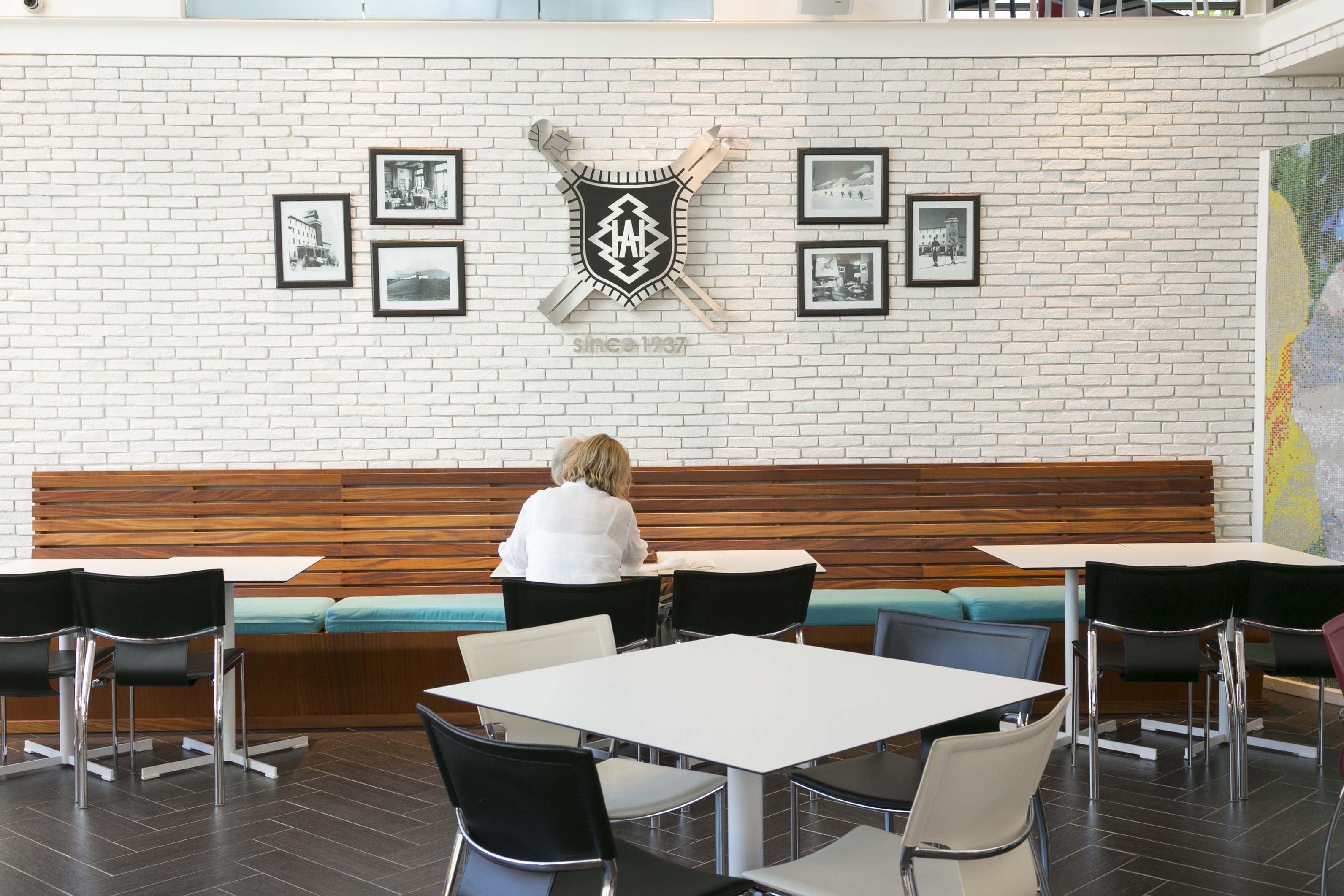 ワイキキから少し離れた、ホノルルのピイコイ通りにある「ベーカリー&テーブル」は、元々1937年に日本で誕生したホテルの中に作られたベーカリーのハワイ支店。当時のパン作りの歴史が受け継がれたカジュアルダイニングで、1階はベーカリー、2階がレストランだ。清潔感のある白いレンガ調の壁に、焼きたてのパンが規則正しく並べられたガラス張りのショーケースが購買意欲をそそる。