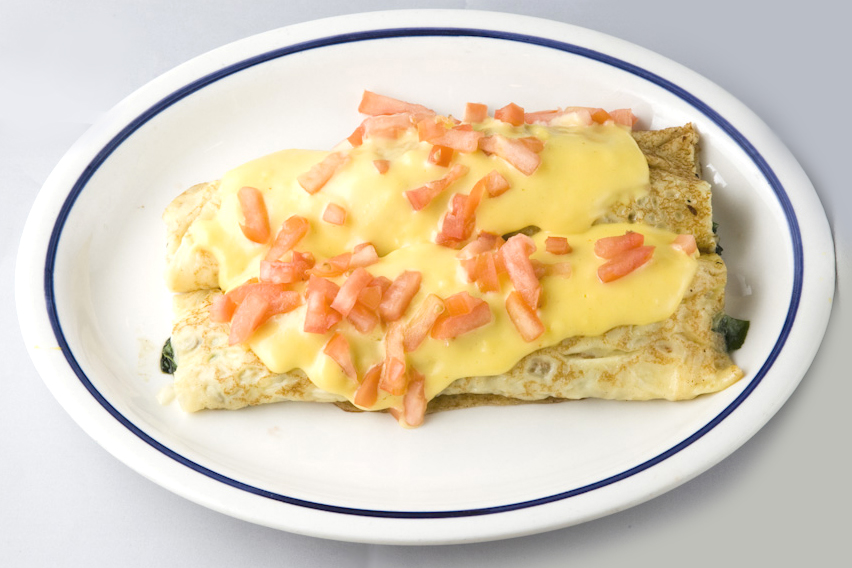 パンケーキ用のバターミルクなどを使ったオムレツは、看板メニューの一つ。ほうれん草&マッシュルームを使ったオムレツをはじめ数種類用意されているが、なかにはたっぷりのステーキが入ったビックステーキオムレツといった一品も。サイドメニューを選ぶことができる。