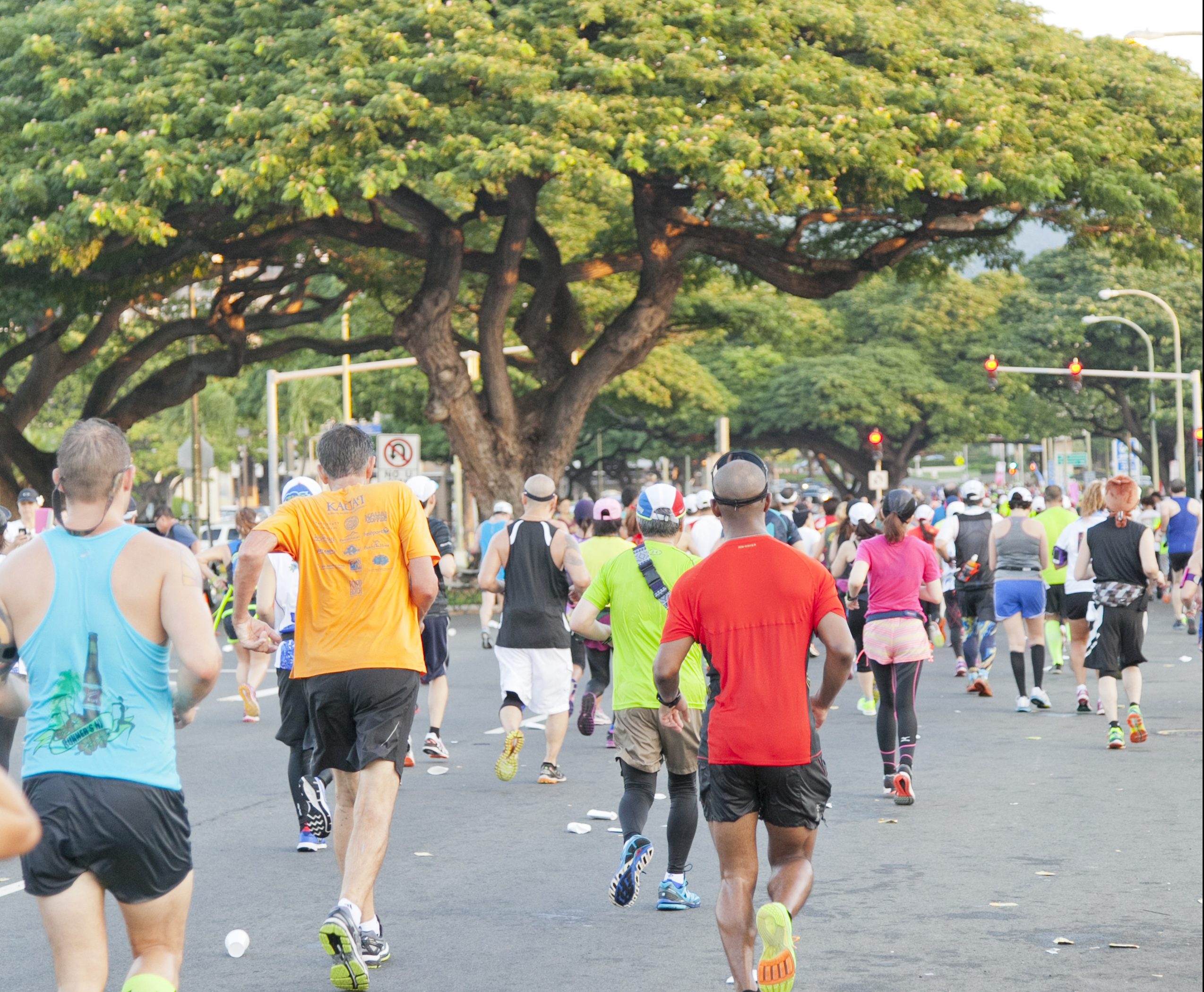 ハワイ特有のからりとした空気は、マラソンに最適! そして朝日やきらめく海が迎える海沿いの景色を目にすれば、疲れが吹き飛ぶ。