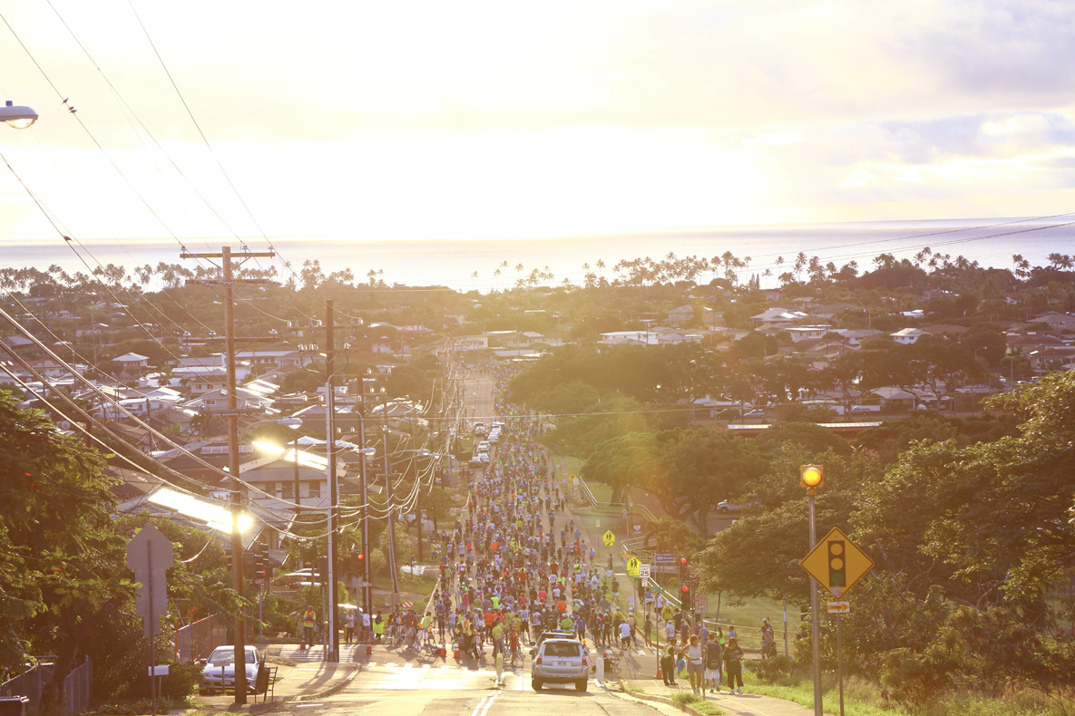 輝く朝日や閑静で美しい住宅街、穏やかな海沿いの景色などのコースを走り抜け、緑溢れるカピオラニ公園でフィニッシュ。大きな声援を受けてゴールをくぐる瞬間は誰もが主役となる。