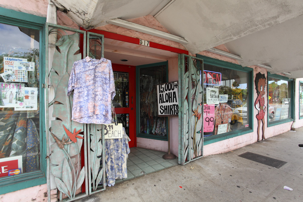 お店は、必見の観光スポットであるダイアモンド・ヘッドの麓のすぐ近く、カパプル通りにある。ダイアモンド・ヘッドの帰りにぜひ立ち寄ってみよう。日本語で世界最大のアンティーク・アロハシャツと書かれている大きな看板が目印だ。