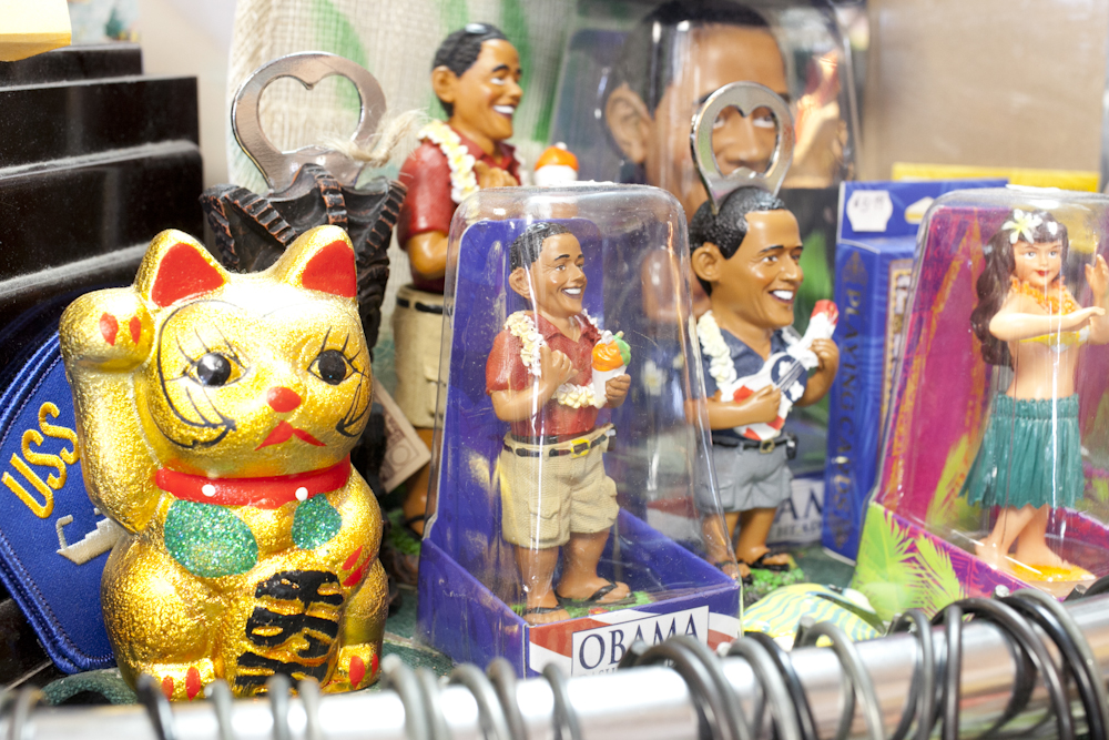 壁一面に並ぶアロハシャツの品ぞろえは、マニアならずとも必見の光景だ。デザインや質感、お値段に合わせて、自分にぴったりの一枚を選ぼう。アロハシャツ以外のも多彩なアイテムがコレクションされている。アメリカンのアンティークやコレクター、Zippoやフィギュア、リーバイスやナイキの人気ブランド、ジュエリーや楽譜、ミリタリーアイテムなど幅広いの一言だ。