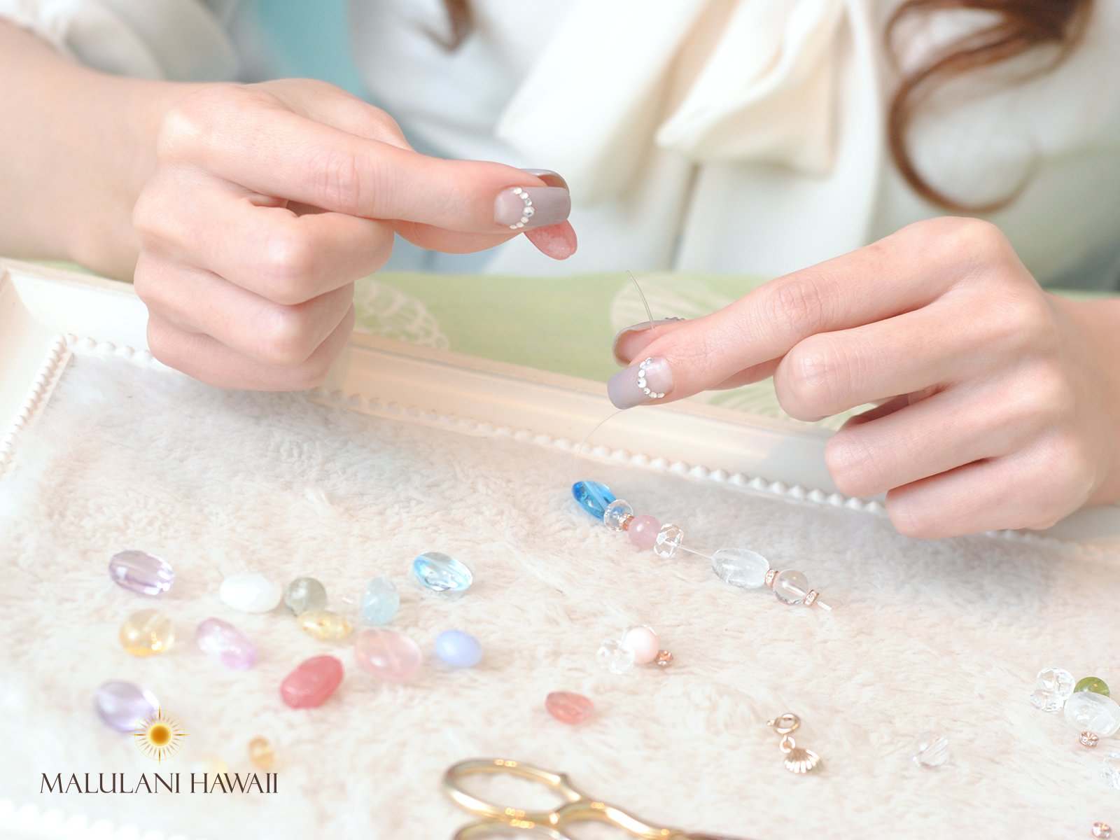 「マルラニ」とは“神のお加護”を表すハワイ語で、ハワイ発パワーストーンブランド「マルラニハワイ」のアクセサリーは、ハワイのパワースポットで浄化した天然石を使用している。