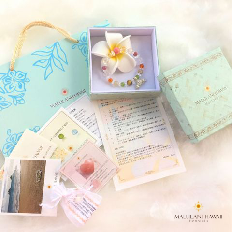 誕生日から導き出された守護石と願い事から作られる「バースデーオーダーブレス」は、ハワイ限定デザインもあり、芸能人にも愛用者が多い。