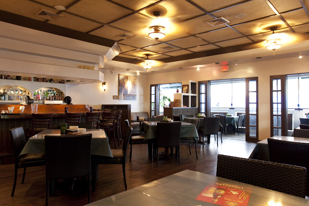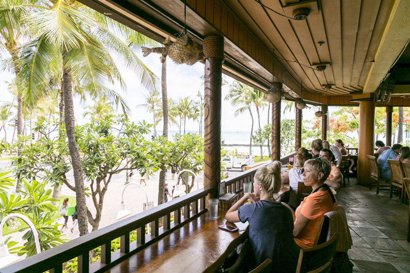 外壁や窓がなく風が吹きぬける店内からはワイキキビーチも望める絶好のロケーション。