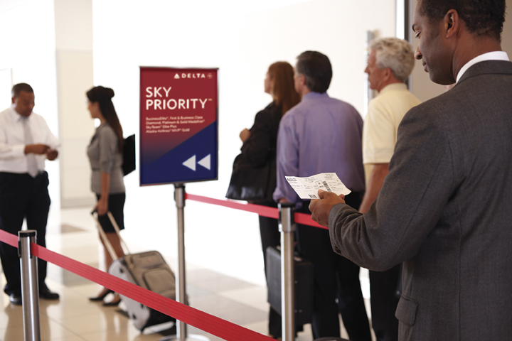 「デルタ・ワン」での旅の始まりは、実にスマート。「スカイ プライオリティ」という、空港での手続きを優先的に通過できるサービスが用意されているためだ。